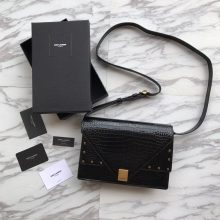 Ysl 圣罗兰秋冬新款女士鳄鱼纹压花挎包 正面翻盖包 Saint Laurent标志方行夹扣