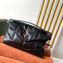 圣罗兰女包 LOULOUPUFFER小号绗缝小羊皮包 29-17-11cm 黑色