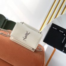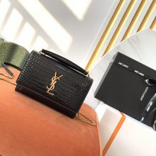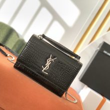 YSL 圣罗兰中国官网 Sunset日落包小号手柄款 特制牛皮鳄鱼纹包身 19-14-5.5cm