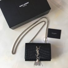 YSL 圣罗兰 原单亮光 鳄鱼纹 流苏包 354120 黑色 17cm