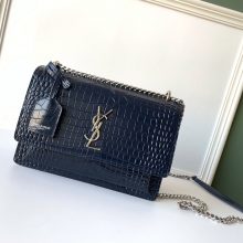 YSL 圣罗兰 鳄鱼纹 Sunset链条包 441971 22/16/8cm 宝蓝色