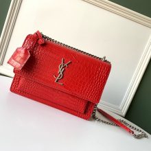 YSL 圣罗兰 鳄鱼纹 Sunset链条包 441971 22/16/8cm 大红色