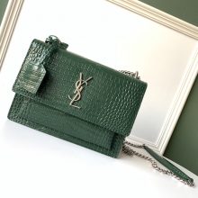 YSL 圣罗兰 鳄鱼纹 Sunset链条包 441971 22/16/8cm 绿色