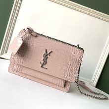 YSL 圣罗兰 鳄鱼纹 Sunset链条包 441971 22/16/8cm 粉色