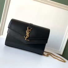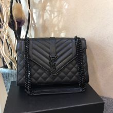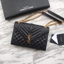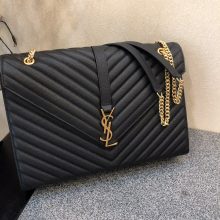 SALNT LAURENT经典之作 容量大 信封包肩背包 31/22/7.5cm 黑色 金色五金