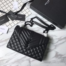 SALNT LAURENT经典之作 容量大 信封包肩背包 31/22/7.5cm 黑色 银色五金