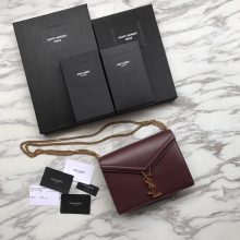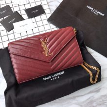 YSL 圣罗兰 全套包装 多卡位小信封包链条包 22.5*4*14cm 酒红色 360452