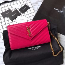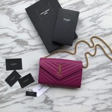 YSL 圣罗兰 全套包装 多卡位小信封包链条包 22.5*4*14cm 玫红 360452