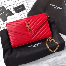 YSL 圣罗兰 全套包装 多卡位小信封包链条包 22.5*4*14cm 红色 360452