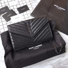 YSL 最新款 信封小包 活动锁扣 22*6*16cm 黑色