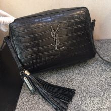YSL 圣罗兰 流苏相机包 全套包装 黑色鳄鱼纹 505730