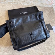 YSL 圣罗兰 niki 系列 最新款购物袋 鳄鱼纹 黑色