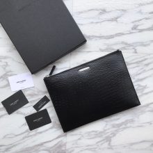 YSL圣罗兰 新款 黑色 鳄鱼纹 牛皮徽标拉链手拿信封包 30x21cm