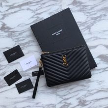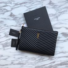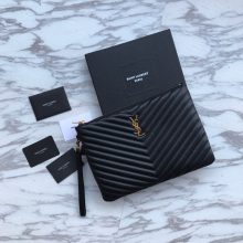 Saint Laurent Paris/圣罗兰2019春季新款黑色经典手拿包 小牛皮拉链 小号24x17cm
