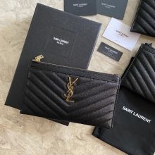 圣罗兰YSL 鱼子酱拉链式钱包 12个卡槽 1个拉链袋 2个钞票隔层 2个票据隔层 尺寸19*9.5*2.5型号423294