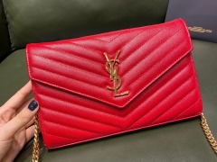 【¥1320】Monogram Woc 大红色金扣# 鱼子酱纹路原厂皮版本信封包 超级实用 大容量